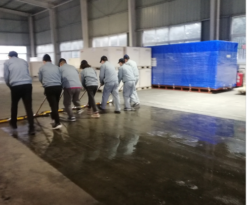 仓储物流课的同事们齐动员,先进行成品仓库的打扫,因成品仓库每天都会有货车来提货,叉车在仓库里来回穿梭,大门敞开所以仓库灰尘比较大。大家先对卷闸门和墙壁进行打扫,用扫笤把上面的蜘蛛网扫掉,再用抹布擦拭清