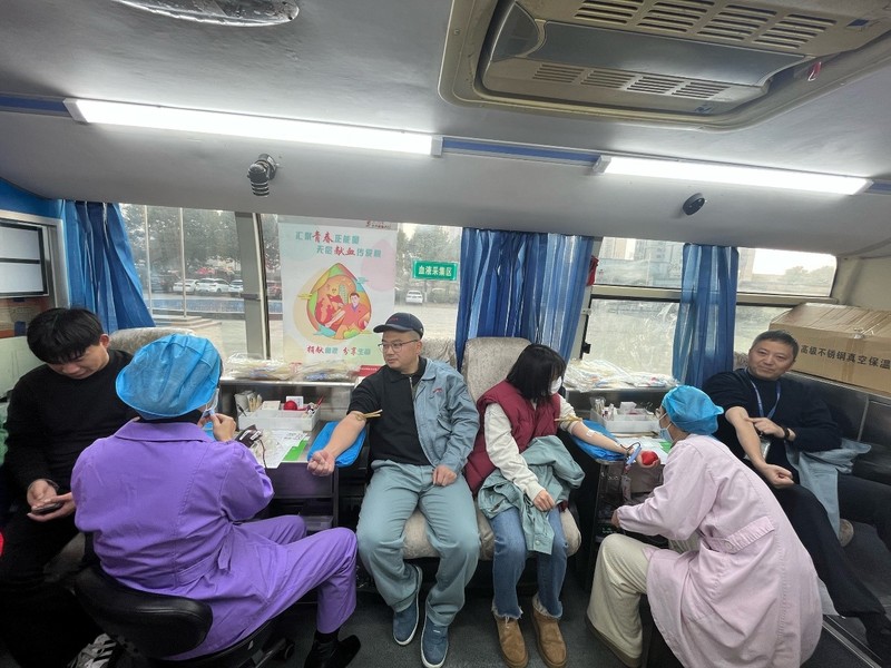 上午9点,襄阳市无偿献血车承载着医患的期盼缓缓驶入厂区。待工作人员一切准备就绪后,SSX来自各部门23位领导同事陆续走上献血车,捐献身体里流淌的热血,续写他人生命的篇章。